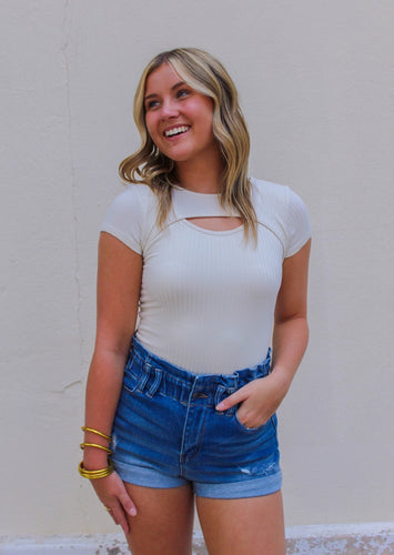 Iris Ribbed Peakaboo Bodysuit- Stone