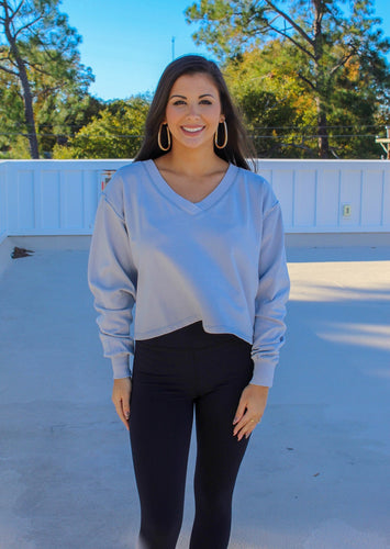 Logan V Neck Long Sleeve Crop- Smock Blue