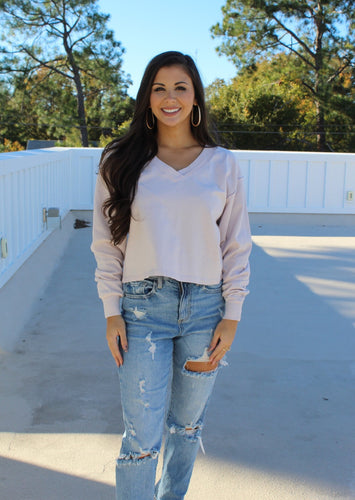 Logan V Neck Long Sleeve Crop- Pale Pink