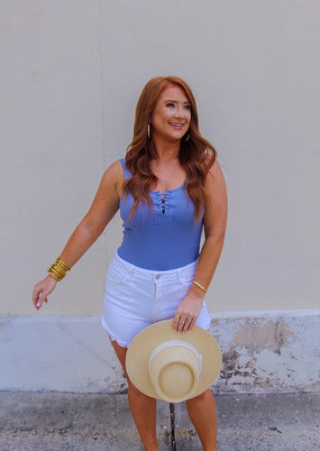 Space Babe Ribbed Bodysuit- Pale Indigo