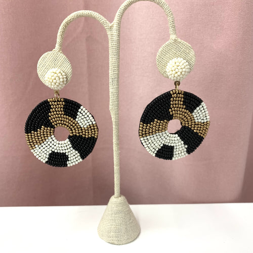 Beaded Eye Earrings- Black/White