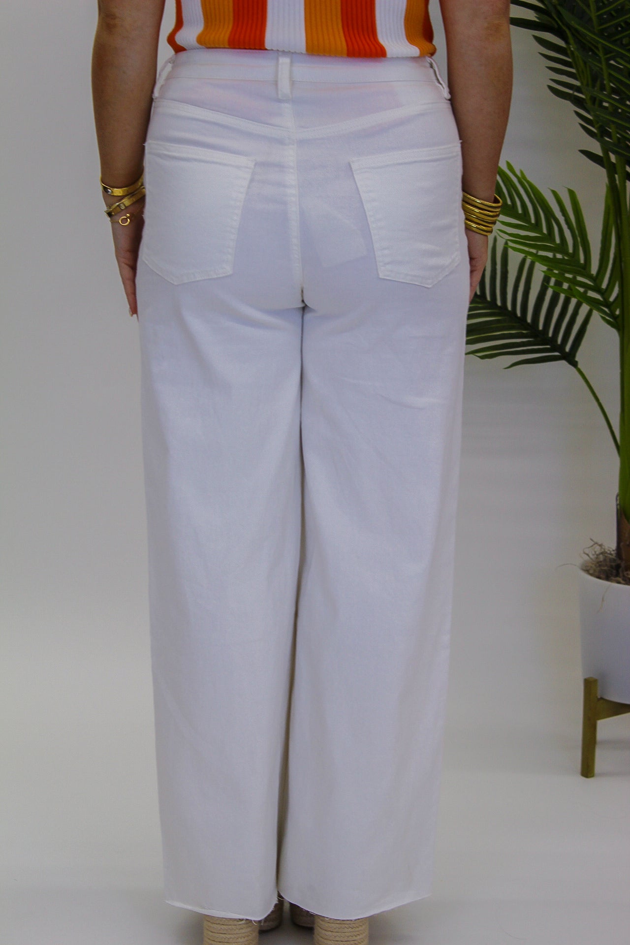 Indulge in effortless style with our Easy Wide Leg Jeans in White. These closet capsule pants are designed with a flattering wide leg, perfect for all spring and summer wear. Elevate your wardrobe with these luxurious jeans.