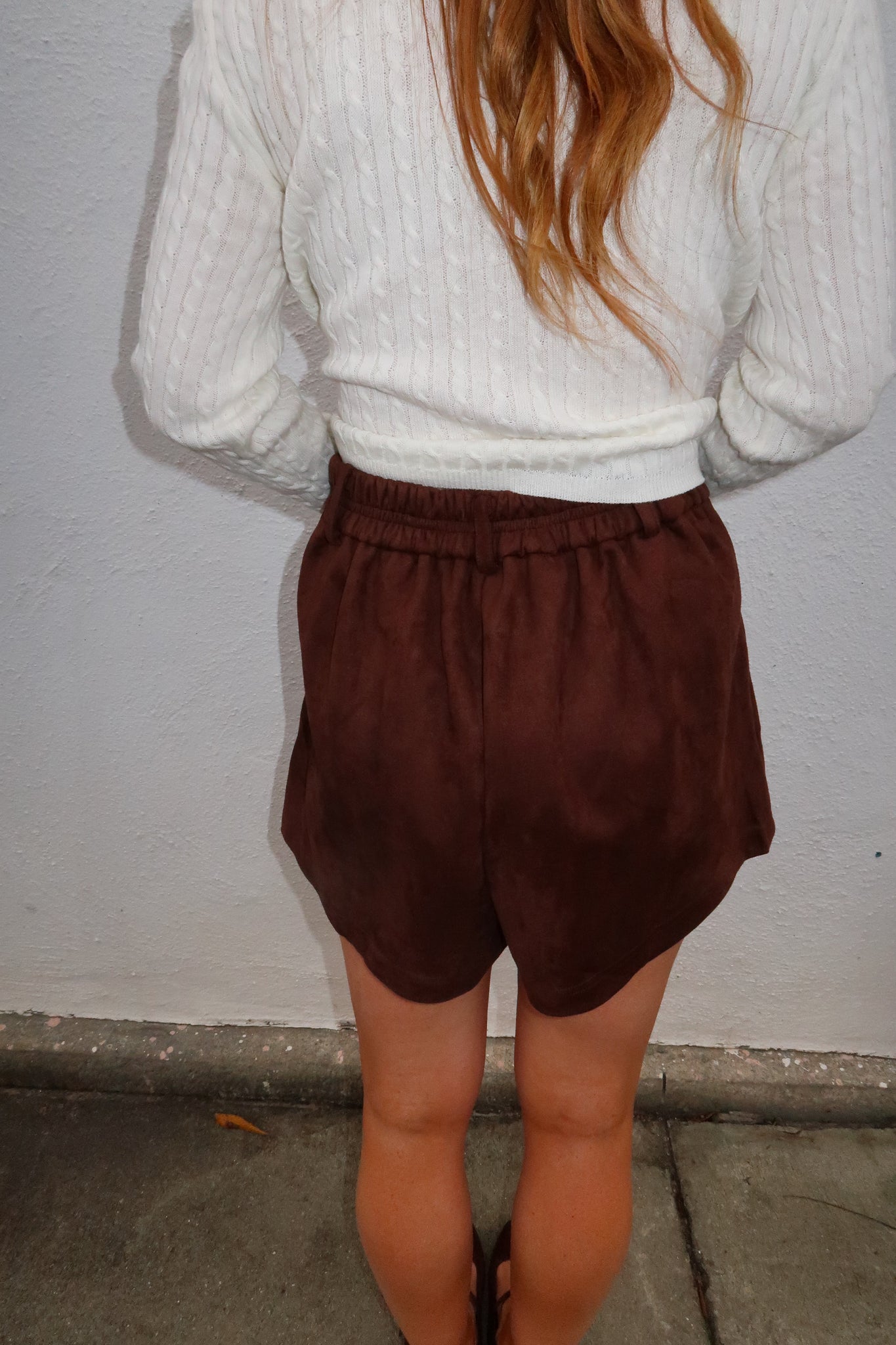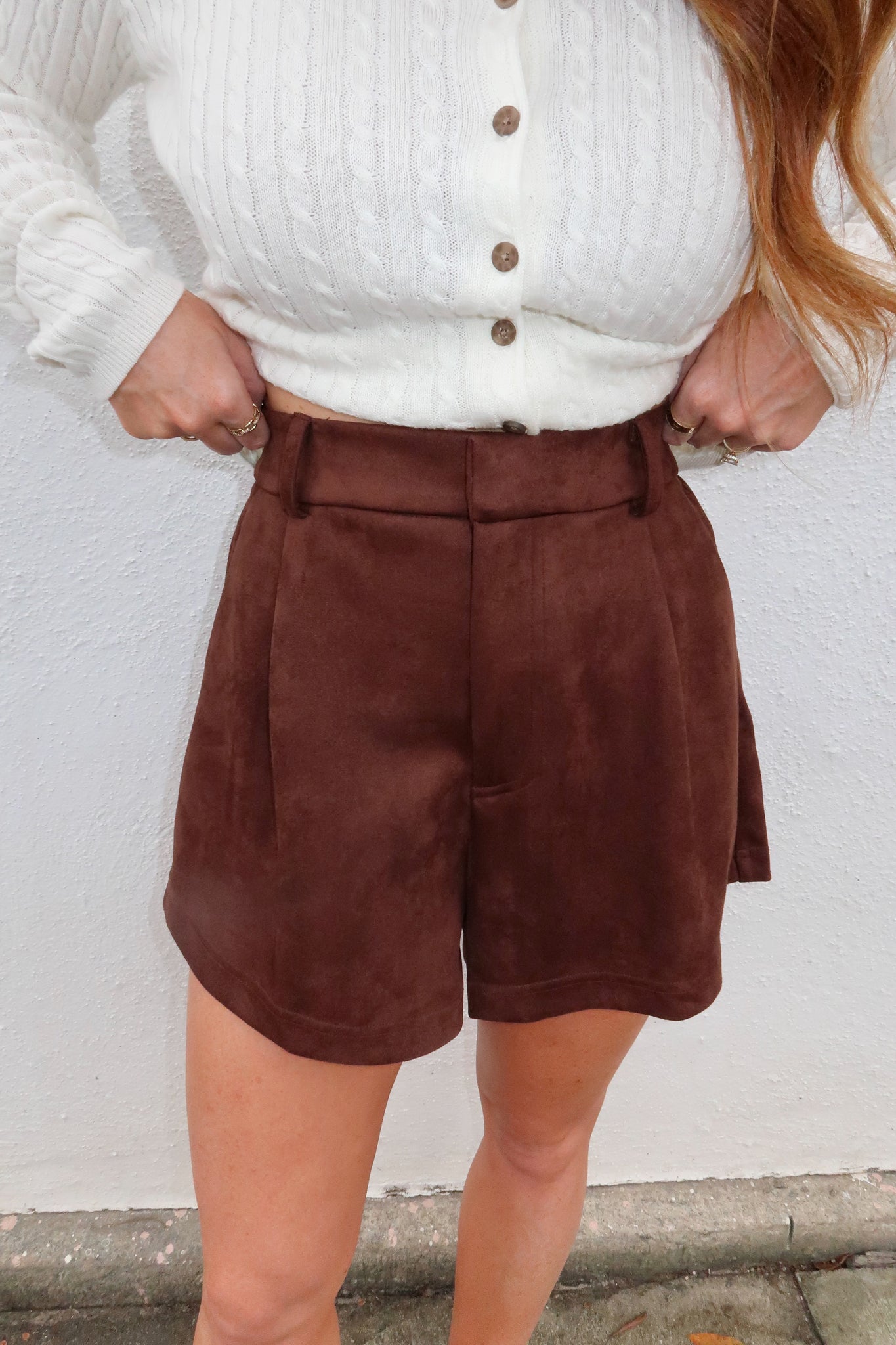 Elevate your autumn wardrobe with these versatile brown suede shorts. Their rich, neutral tone pairs effortlessly with layered sweaters, fitted bodysuits, and virtually any top in your collection. Crafted for comfort and style, the Maggie shorts transition seamlessly from season to season, making them a timeless piece you'll reach for again and again. Perfect for creating polished, put-together looks with minimal effort.