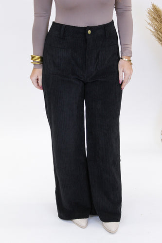 Loyalty Corduroy Wide Leg Pants- Black![]()  - Regular price