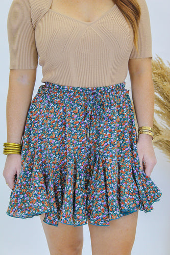 Charming Floral Ruffle Skirt-Green![]()  - Regular price