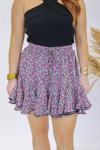 Charming Floral Ruffle Skirt- Black![]()  - Regular price