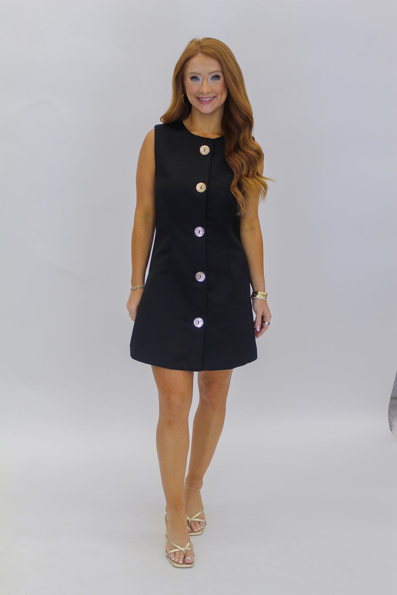 Elevate your wardrobe with our luxurious Jackie Gold Button Mini Dress.This classic dress seamlessly transitions from day to night, making it perfect for all ages. Pair it with your favorite heels and exude sophistication and trendiness in any occasion.