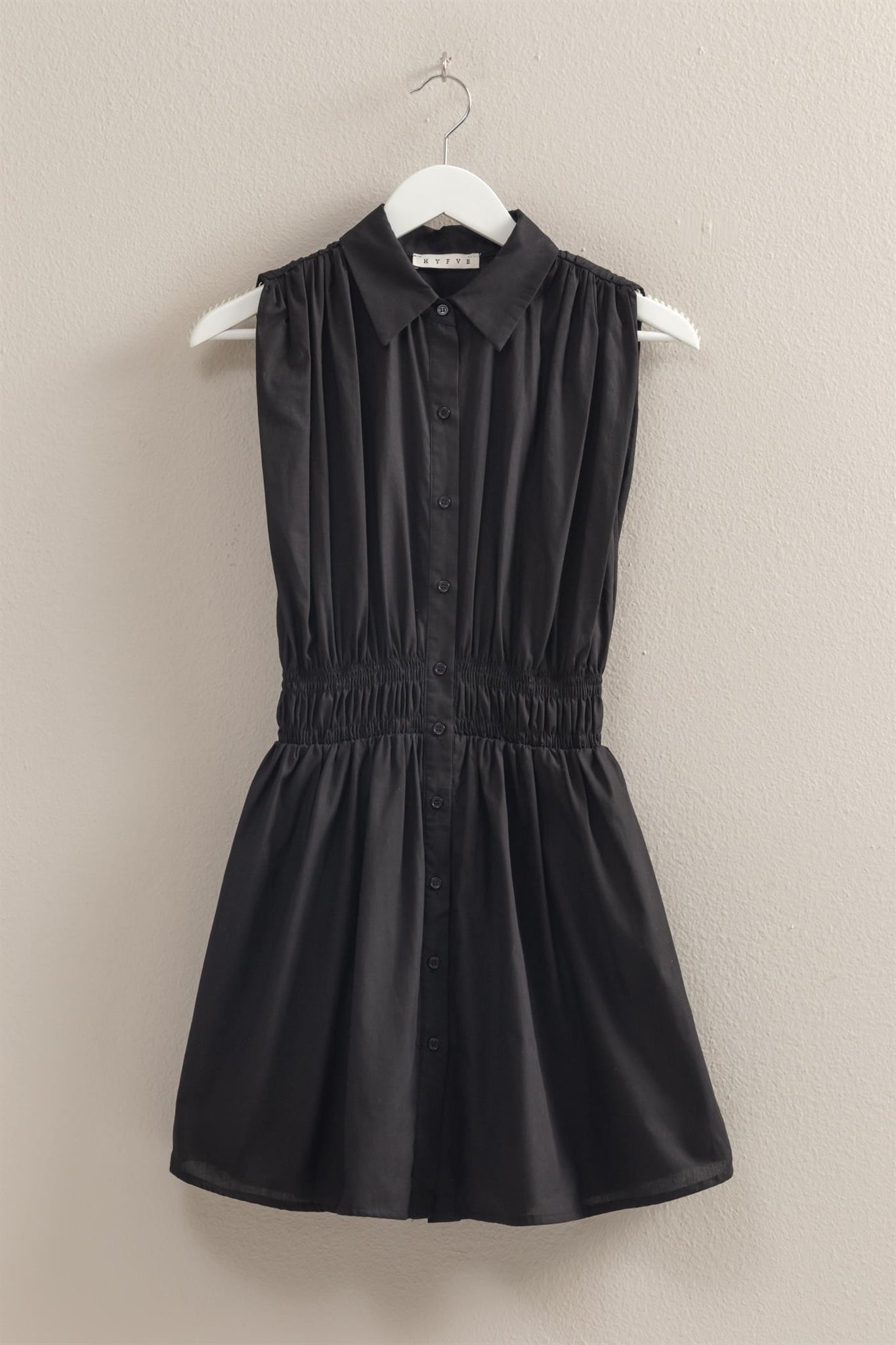 Introducing the Perry Poplin Sleeveless Dress in black This elegant dress is the perfect addition to your spring and summer wardrobe. From a dinner or day date, its versatile design and luxurious fabric will have you looking effortlessly chic.