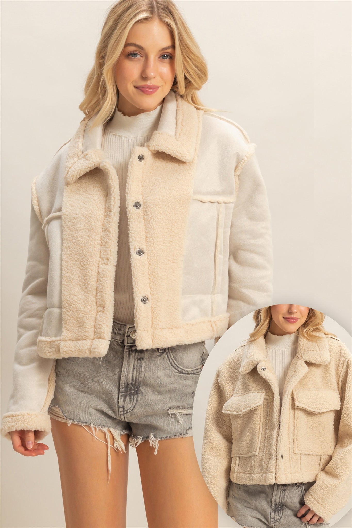 The Tori Reversible Suede Sherpa Mixed Jacket effortlessly transitions from casual to refined, making it an indispensable layering piece for any season. Crafted with luxurious suede on one side and cozy sherpa on the other, this jacket delivers two distinct looks in one versatile design. Wear it polished over a dress or relaxed with your favorite jeans—the reversible construction ensures you'll reach for it again and again, maximizing both style and value.