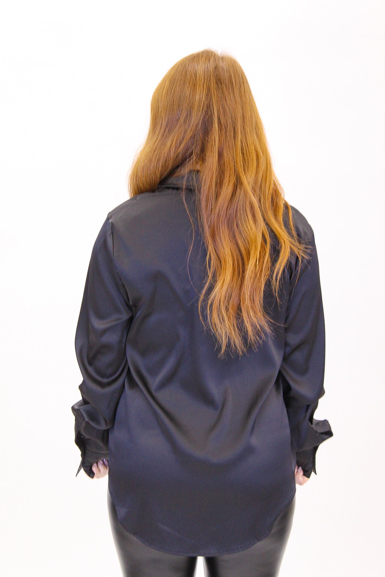• Classically stylish and versatile, the City Scene Button Up Top is ideal for days when a sophisticated look is essential. Featuring a black hue and a glossy finish, it can be easily dressed up or down-perfect for those work-to-drinks moments. Effortlessly chic.