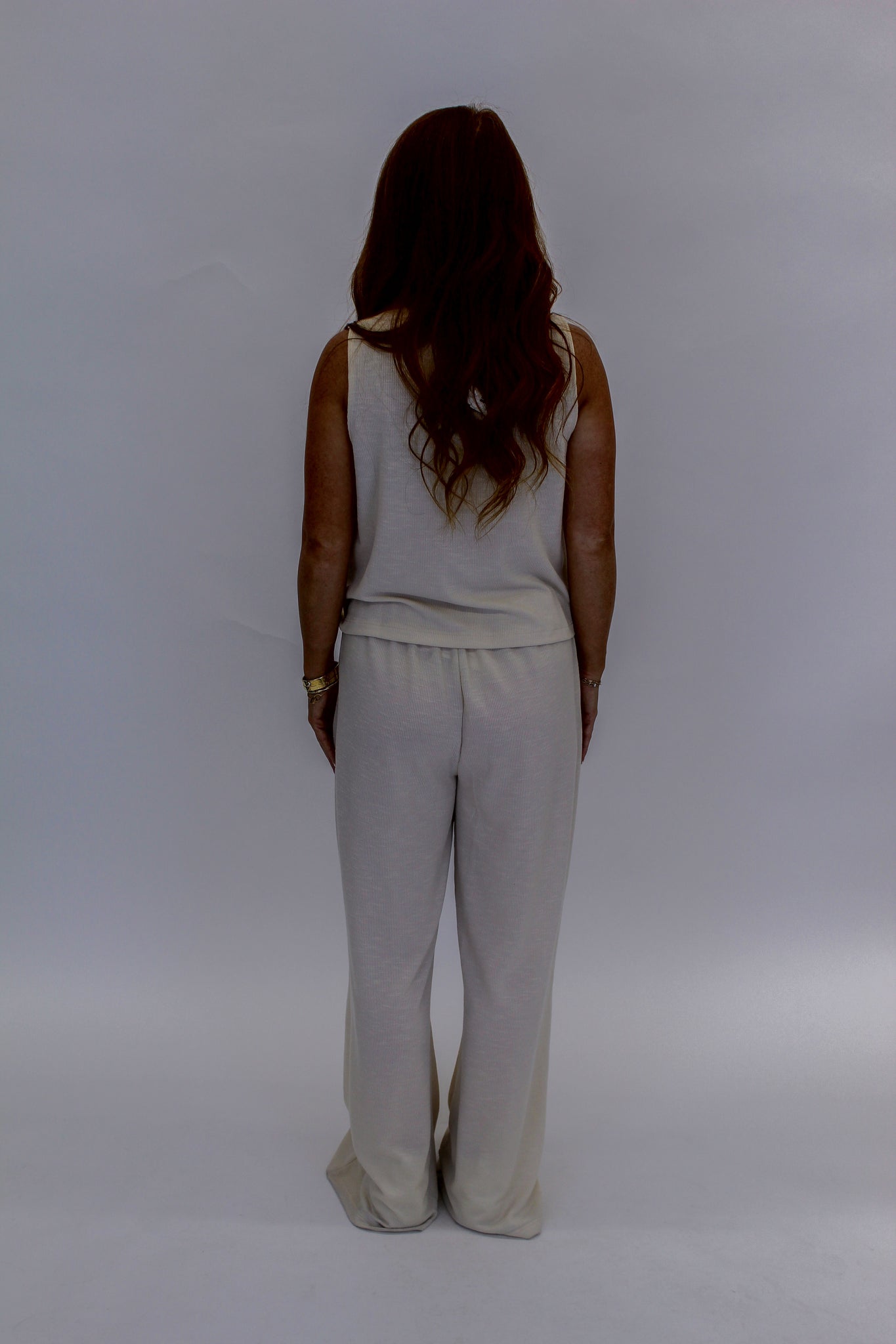 Indulge in luxury with the Claire Sleeveless Top and Wide Leg Pants Set. Perfect for any occasion, this comfortable set is easy to travel in and great for running errands. Complete your look with sneakers or flip flops and elevate your style with effortless sophistication.