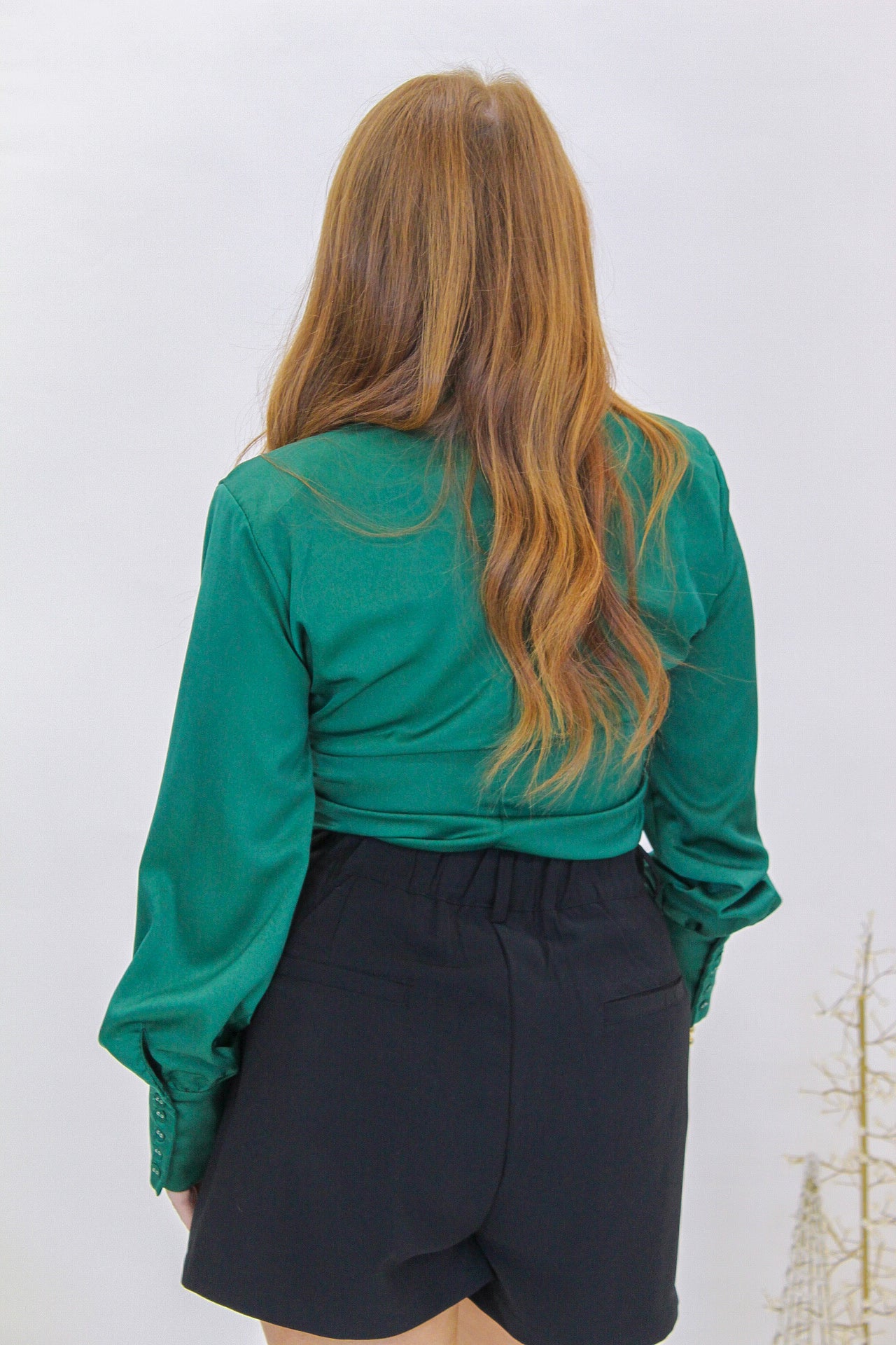 Luxuriate in the regal tones of our Happy Season Button Up Top- Emerald. This waist-length top showcases a sophisticated holiday look that will take you from the office to the Christmas party in effortless style. Intricate ruching to the waist adds a flattering silhouette that will ensure you look your best.