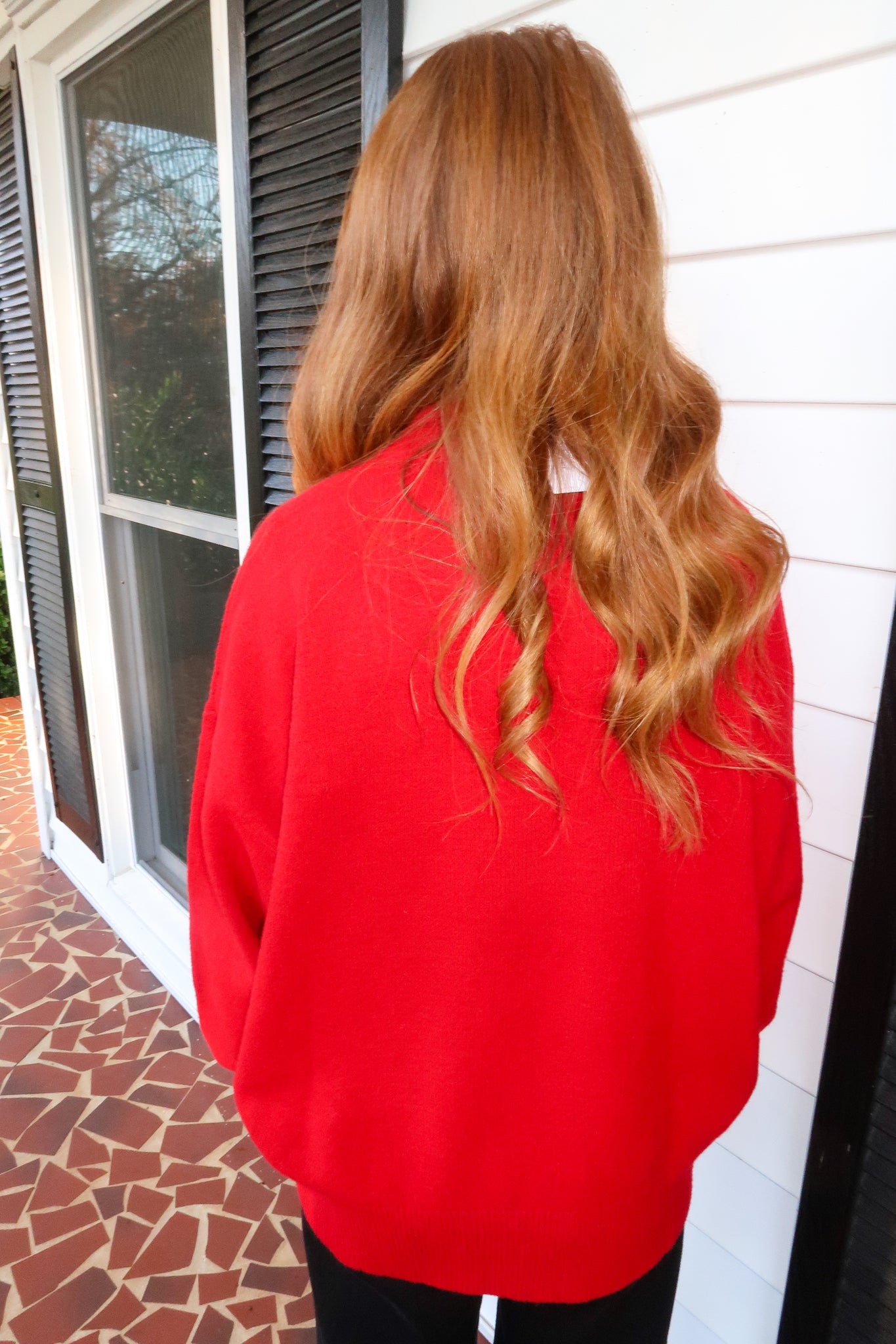 Elevate your holiday wardrobe with this refined red mock neck sweater, a versatile essential that transitions effortlessly from casual to polished. The rich crimson hue pairs beautifully with any bottom, whether you're styling jeans, trousers, or skirts. Crafted for comfort and warmth, this timeless piece delivers both sophistication and practicality for the season ahead.