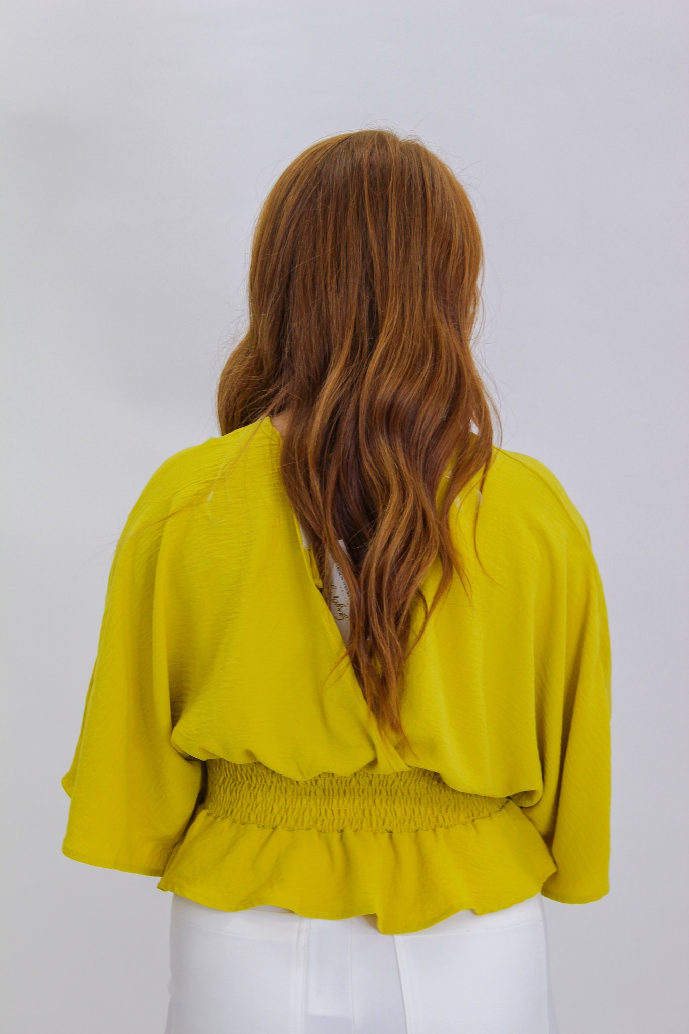 This flowy top is one you can wear in the summer or fall! Pair with white bottoms or denim shorts or pants!