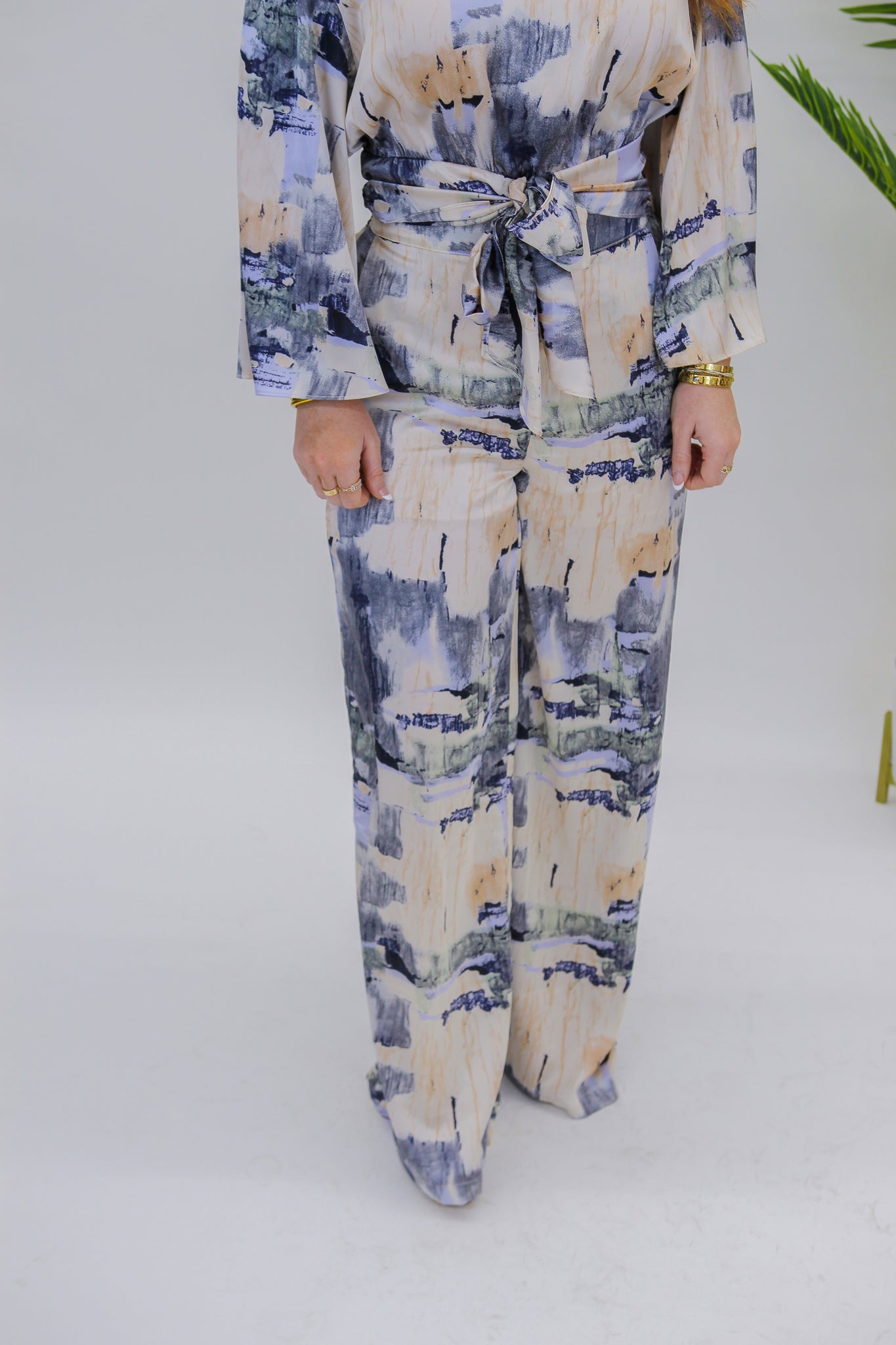 Go Figure Printed Pants- Grey