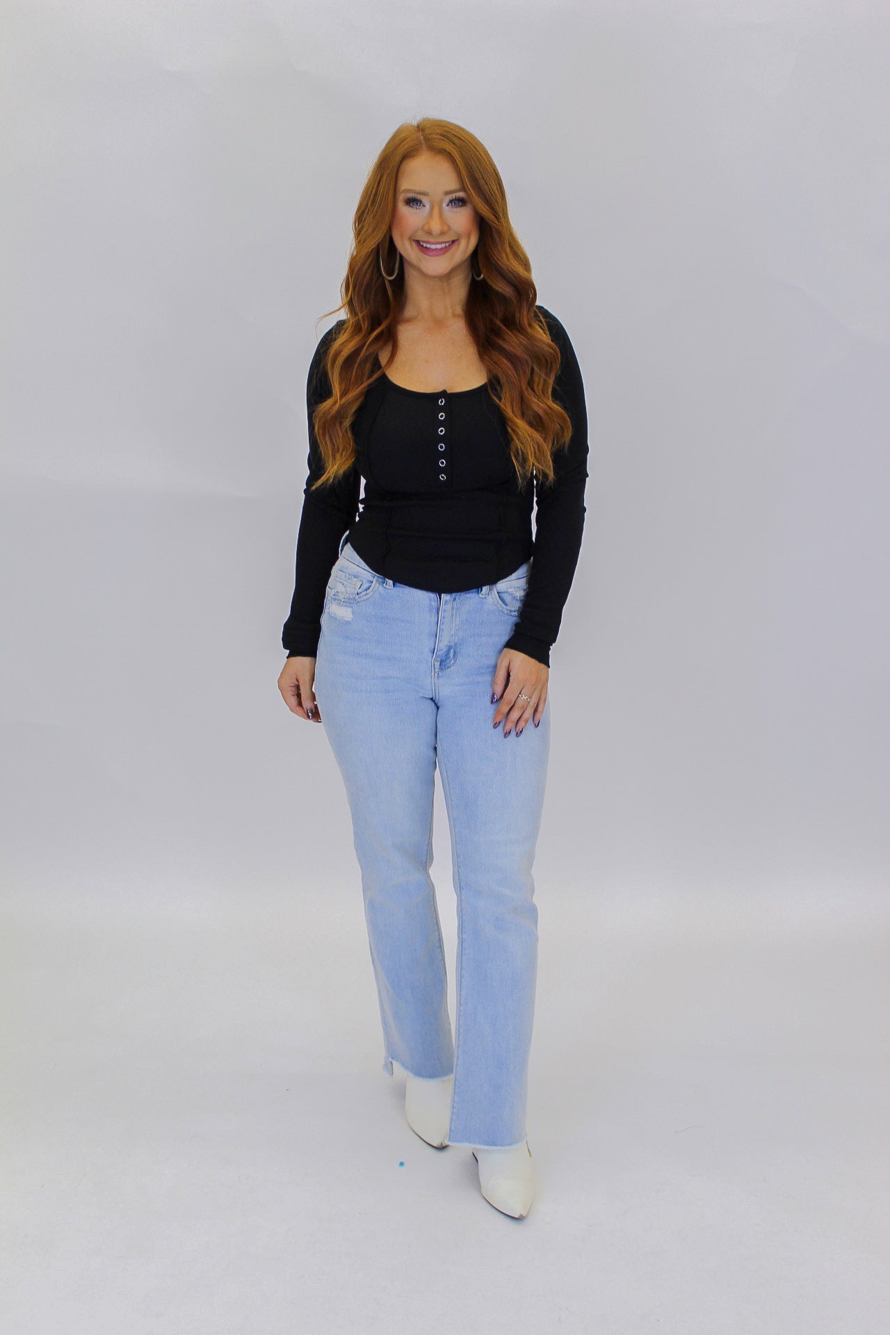 Elevate your style with our Rebecca Button Up Ribbed Top. A versatile basic that effortlessly pairs with jeans or under jackets. Embrace simplicity and sophistication with this premium piece in timeless black.