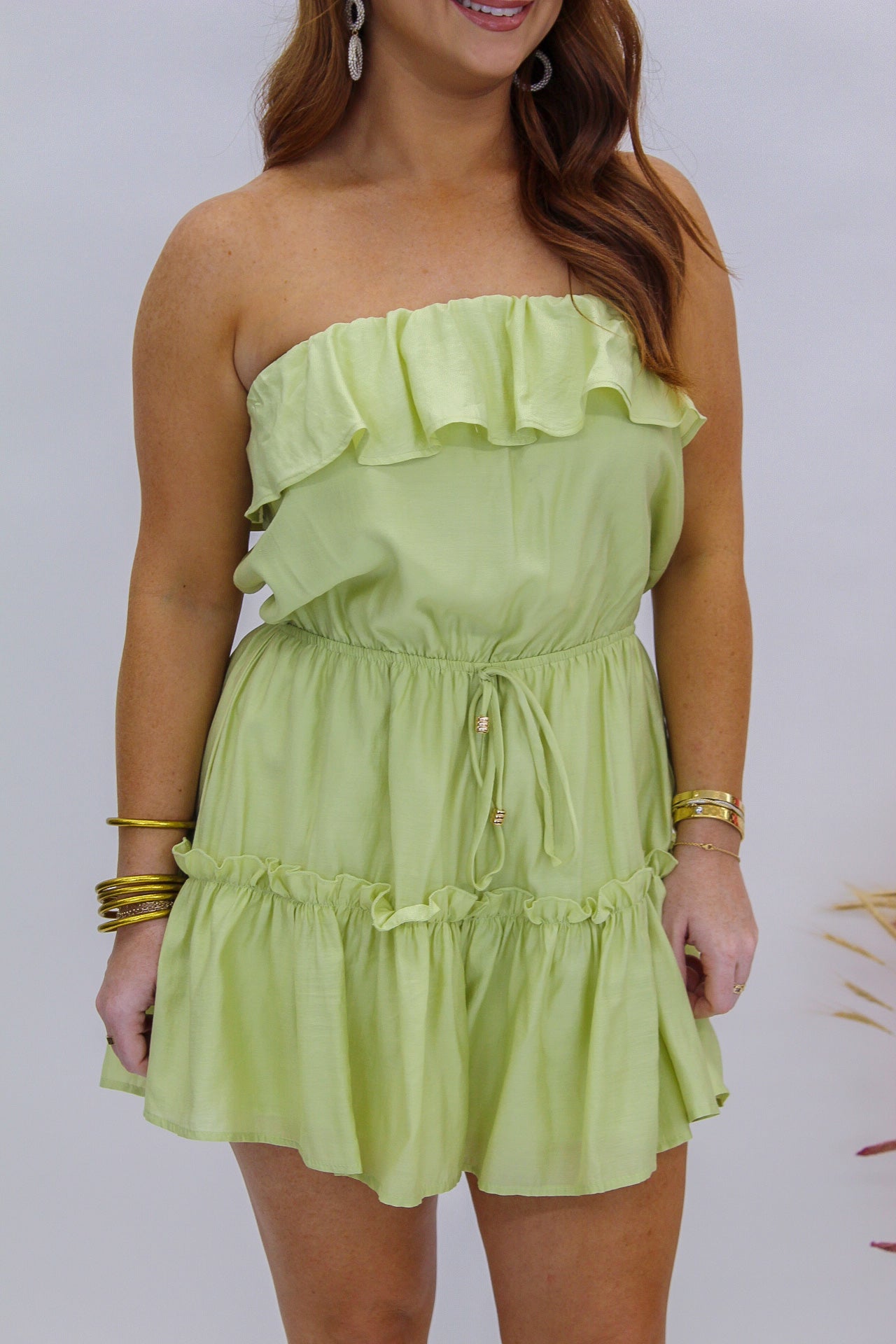 Still The One Ruffled Strapless Romper- Lime